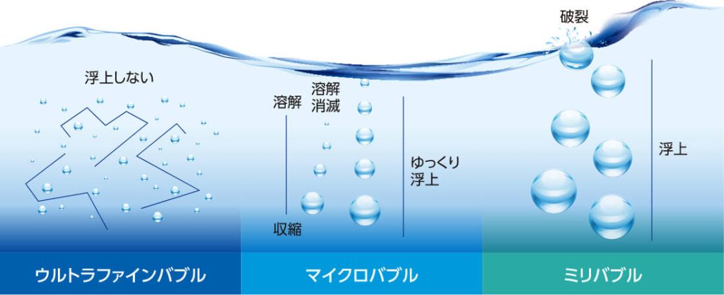 サイズが直径1マイクロメートル(1,000分の1ミリメートル)未満の目に見えない極小の気泡をウルトラファンバブルと呼びます。この気泡を発生させる技術は、日本が世界をリードする最新技術として近年さまざまな産業で活用が進んでいます。